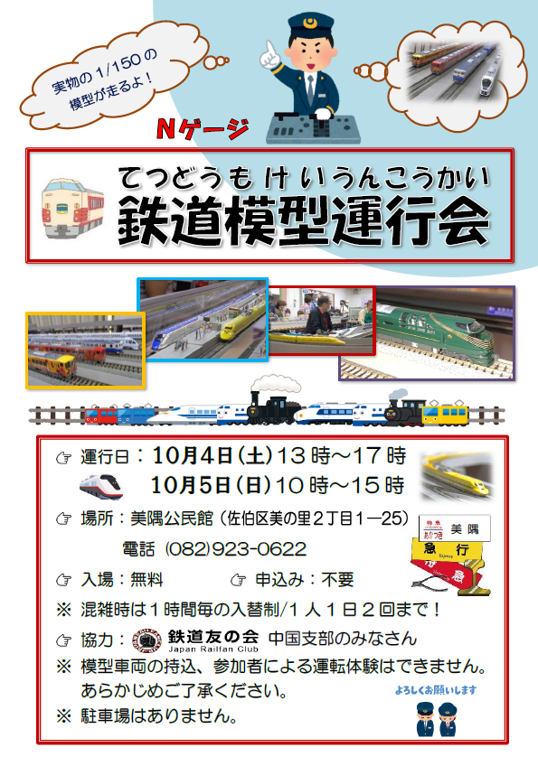 毎年恒例となった、秋の公開模型運行会を今年も広島市美隅公民館からの依頼を受け実施。