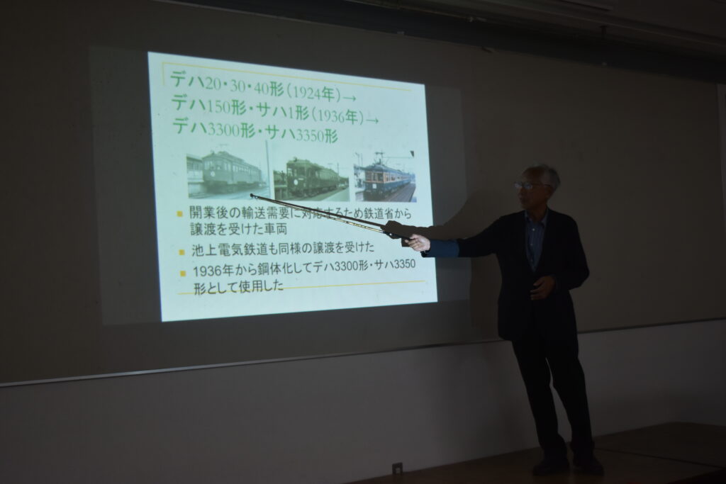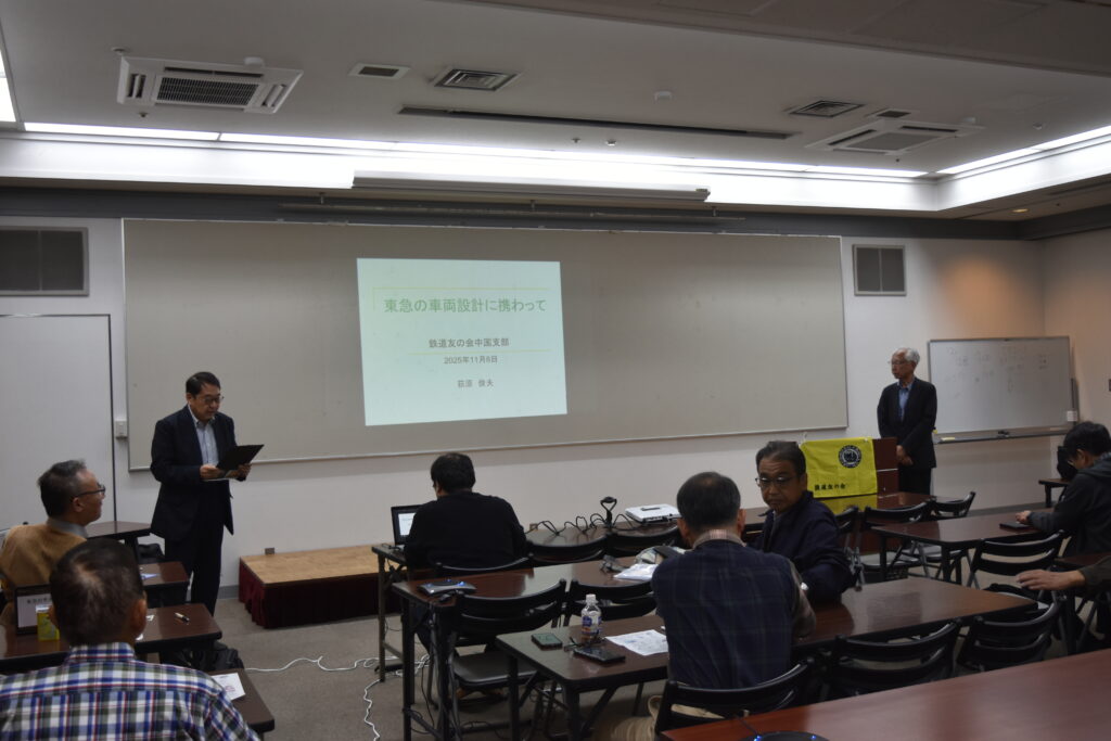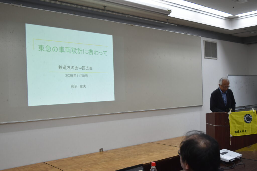 今回は本部より荻原理事をお招きし、「東急の車両設計に携わって」をテーマに講演を行っていただきました。