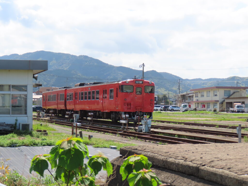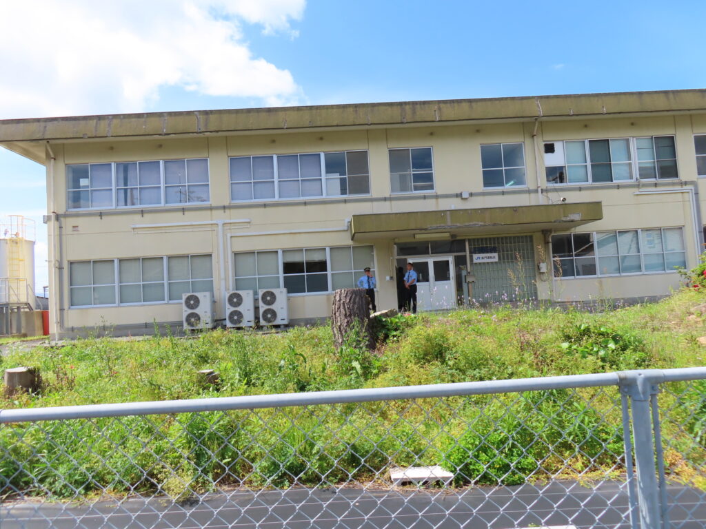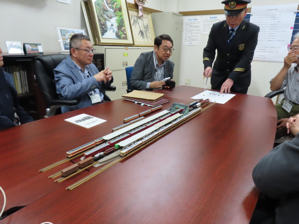 駅の変遷説明のために職員様が私物の鉄道模型を持参されて、在りし日の長門市駅を再現されておりました。