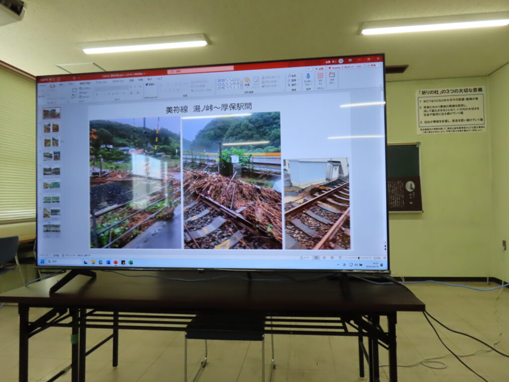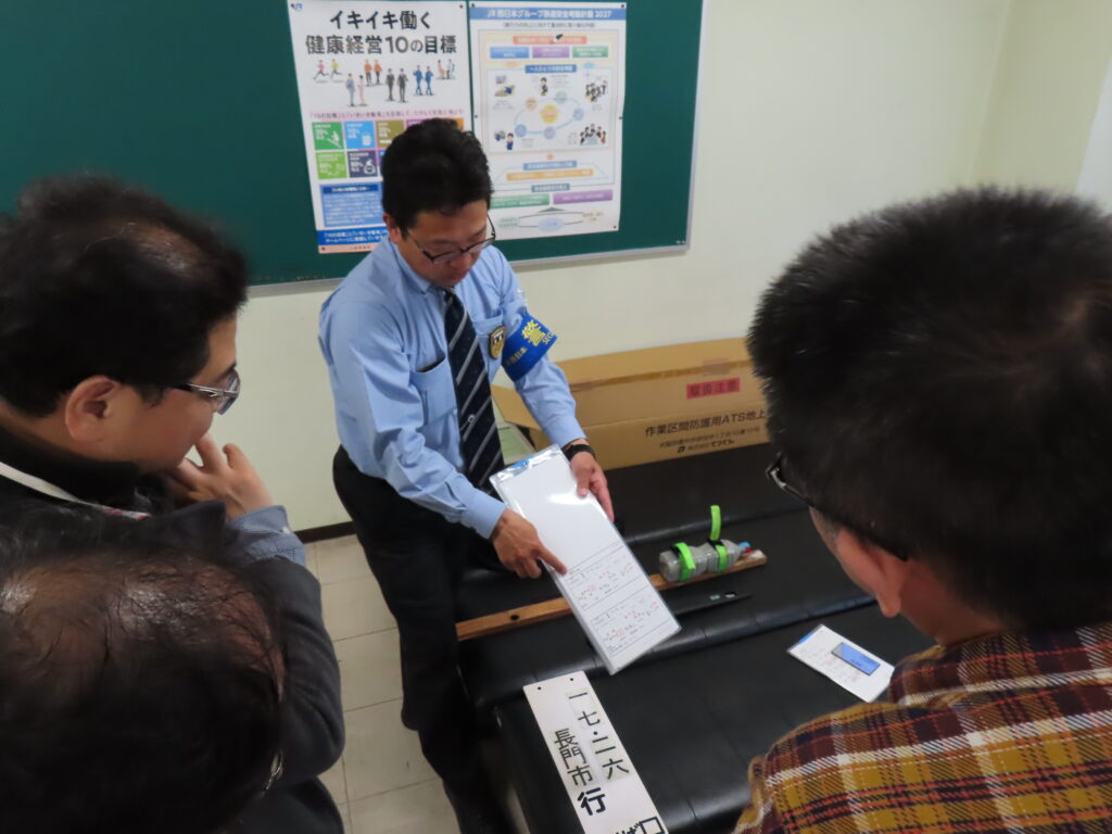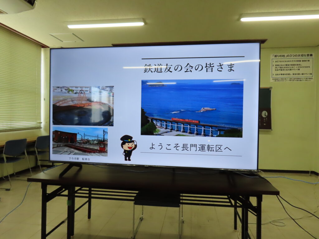 長門運転区では金重区長様より概要説明があり、その後2班に分かれ設備等見学や一部設備を